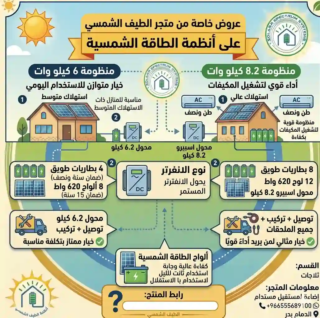 عروض خاصة من متجر الطيف الشمسي على أنظمة الطاقة الشمسية