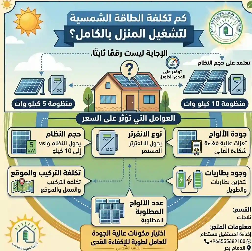 كل هذه العوامل جعلت الاستثمار في نظام طاقة شمسية منزلي خيارًا ذكيًا وعمليًا لكل من يبحث عن توفير طويل المدى وكفاءة عالية.